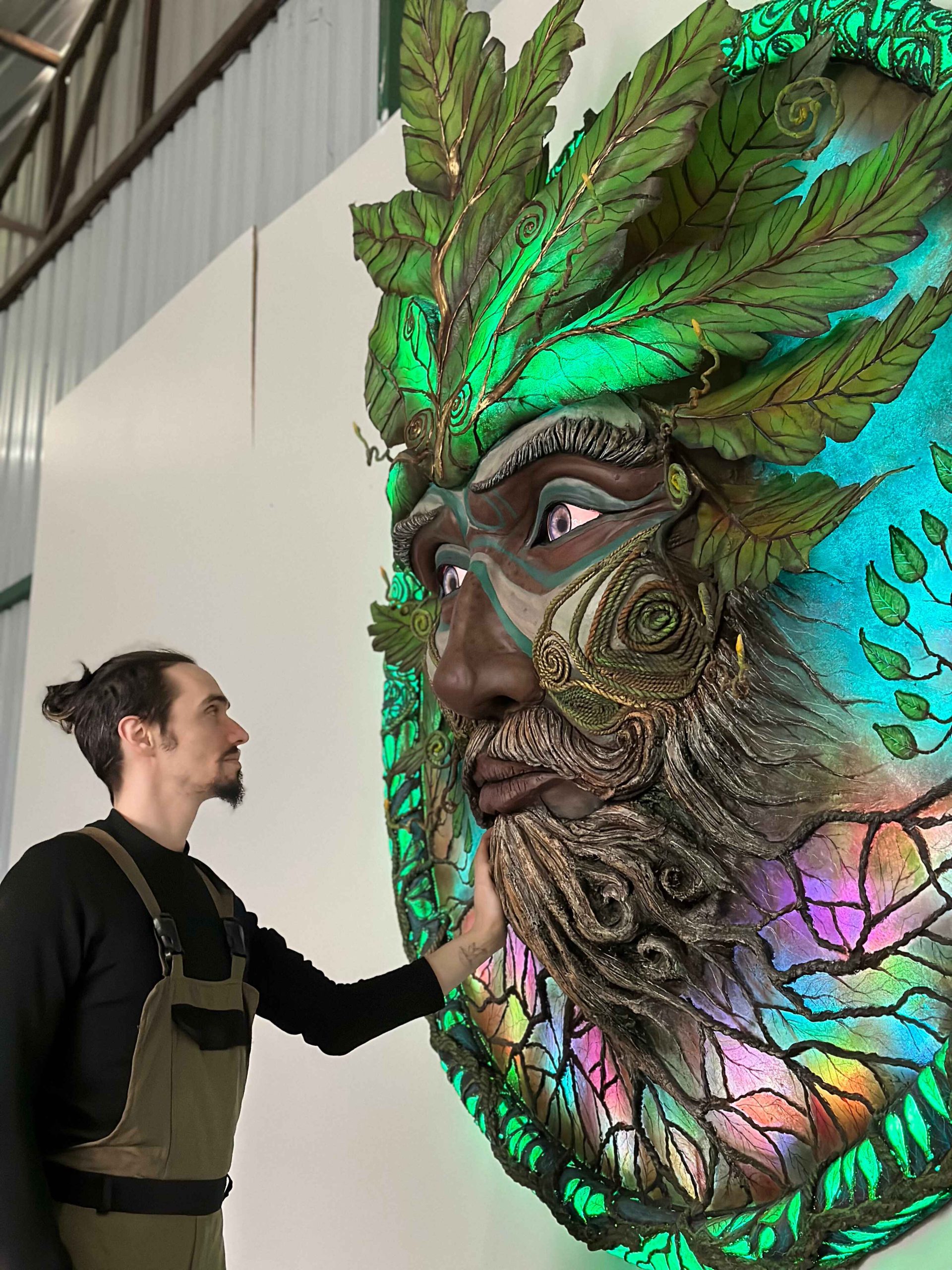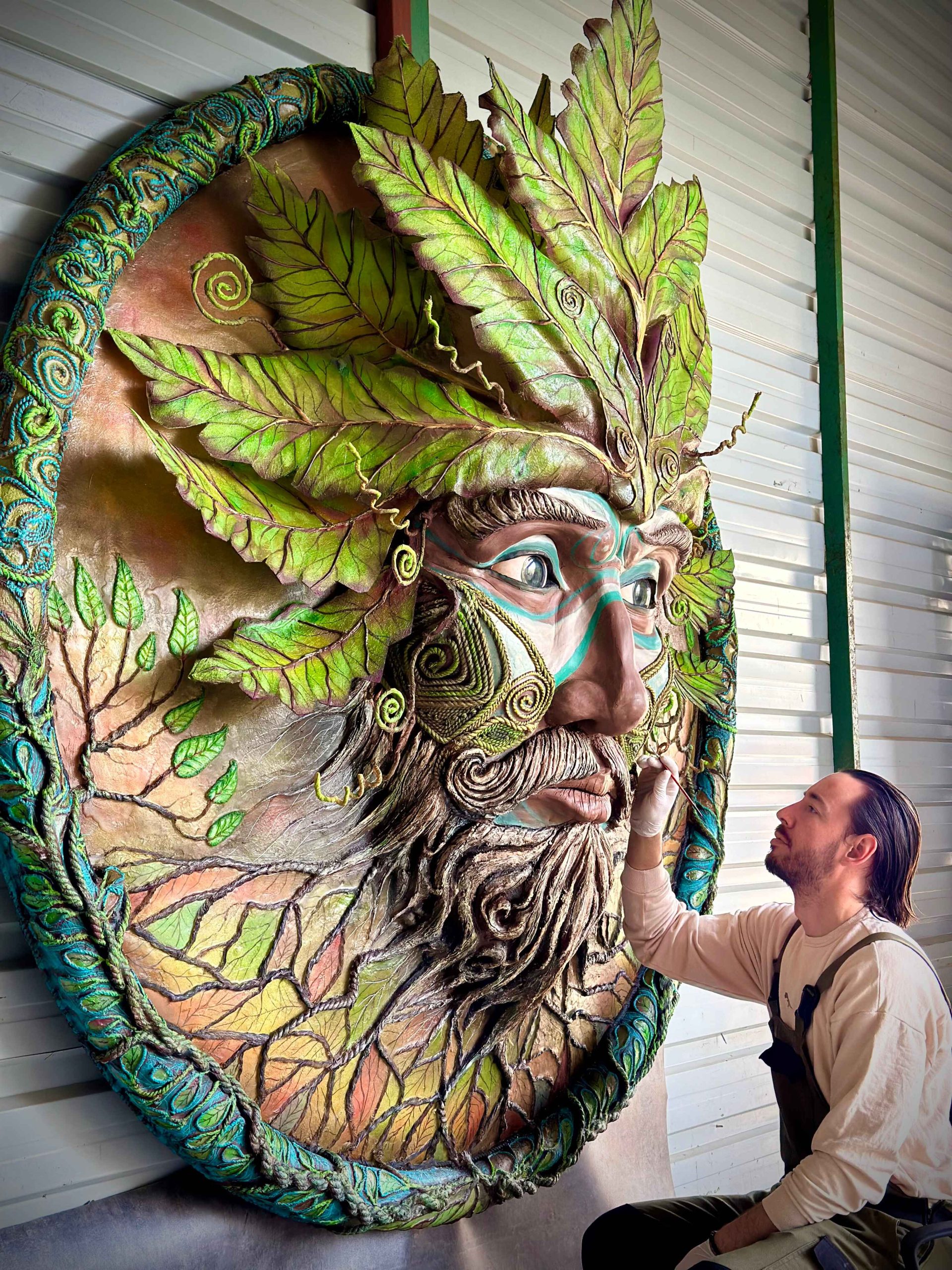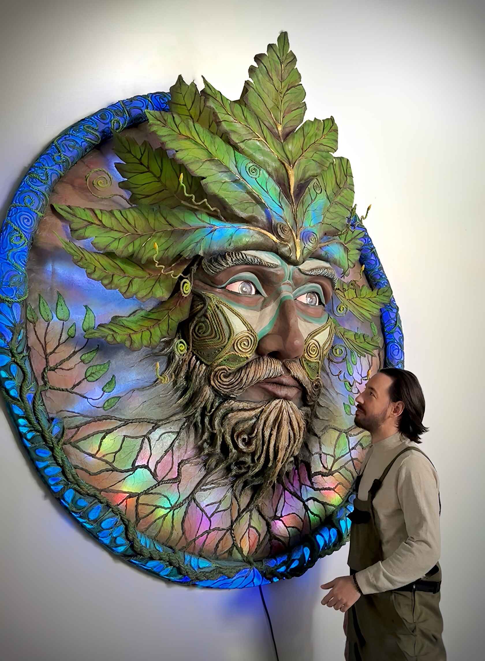 Grand Ajo is an imaginary character that was designed for a luxury venue. The gaze and facial features convey a character of a mature age with great experience, who has led the tribes of the forest with his wisdom. Grand Ajo is the great sage who becomes one with nature and clings to the forest with branches and roots. ”A heart without love cannot give life to a great sage.” This is an exclusive piece that will not bereproduced again.