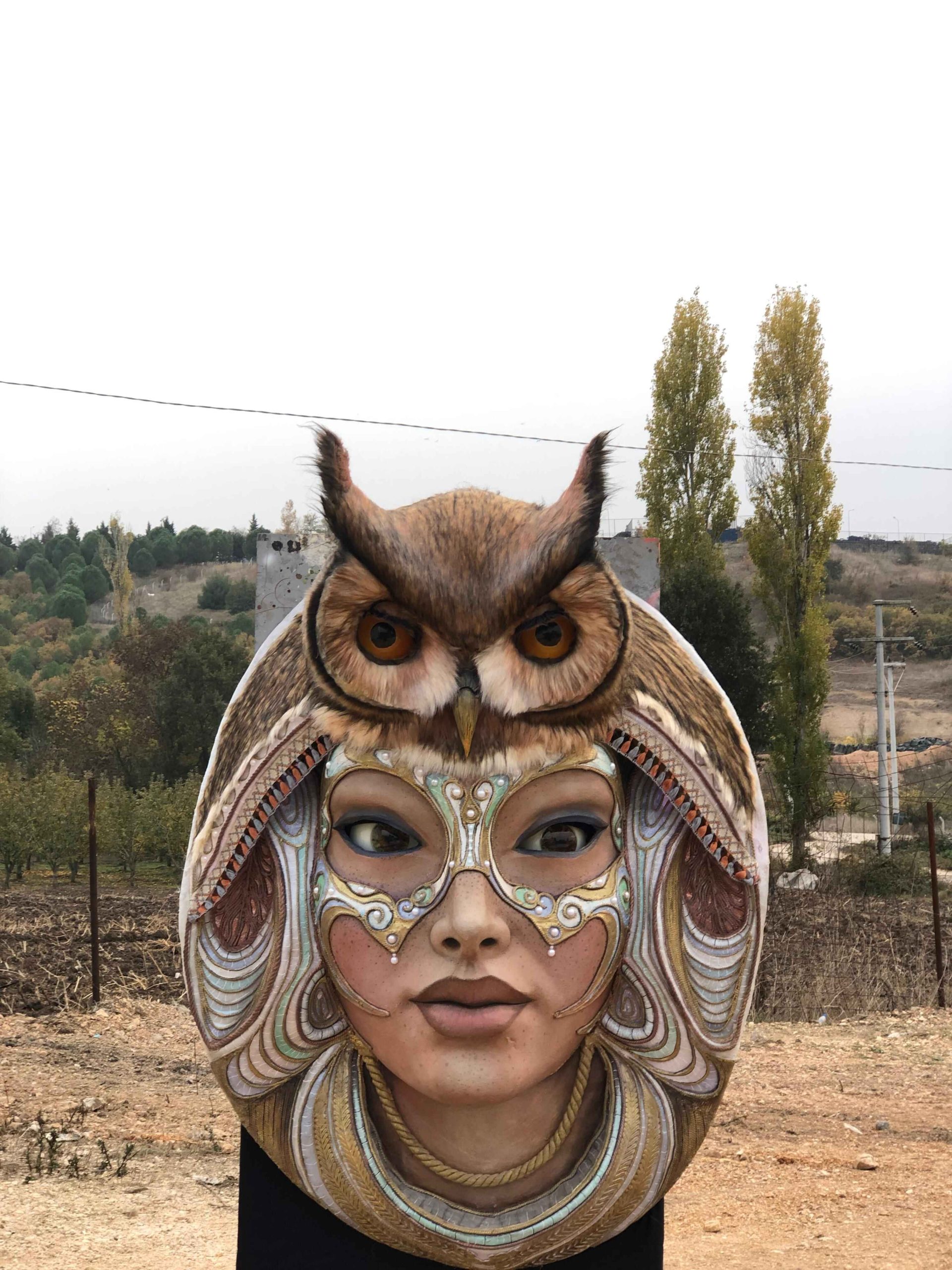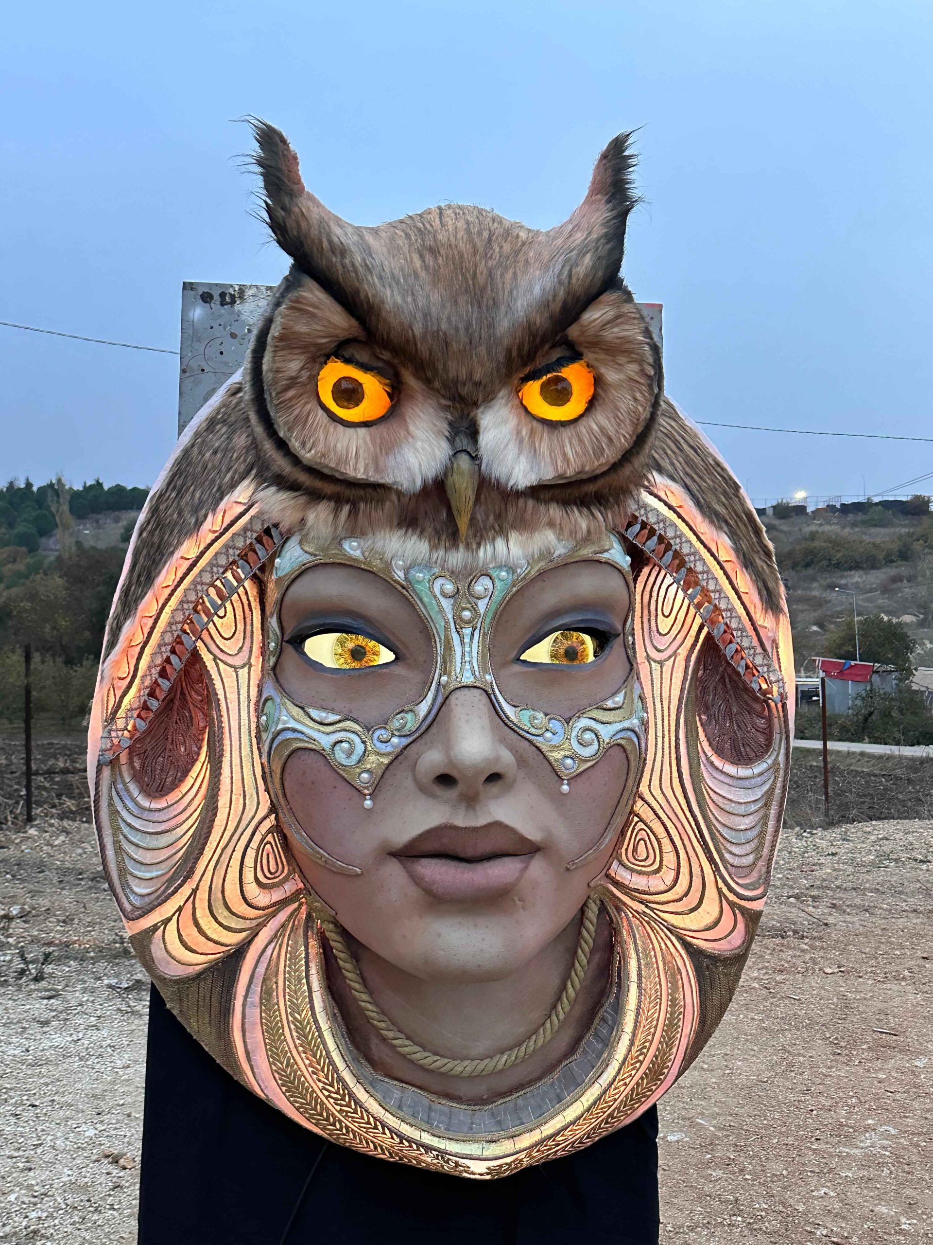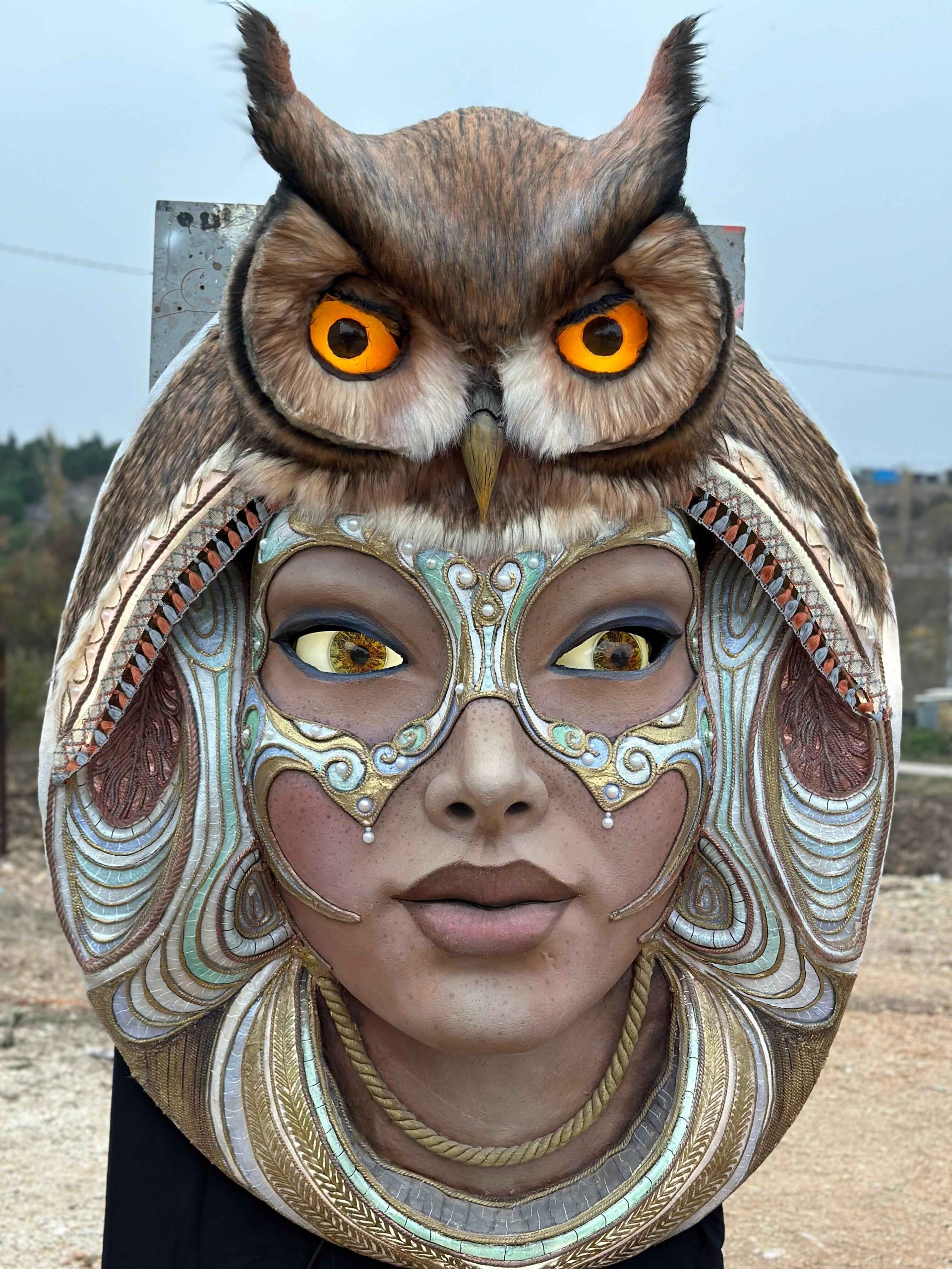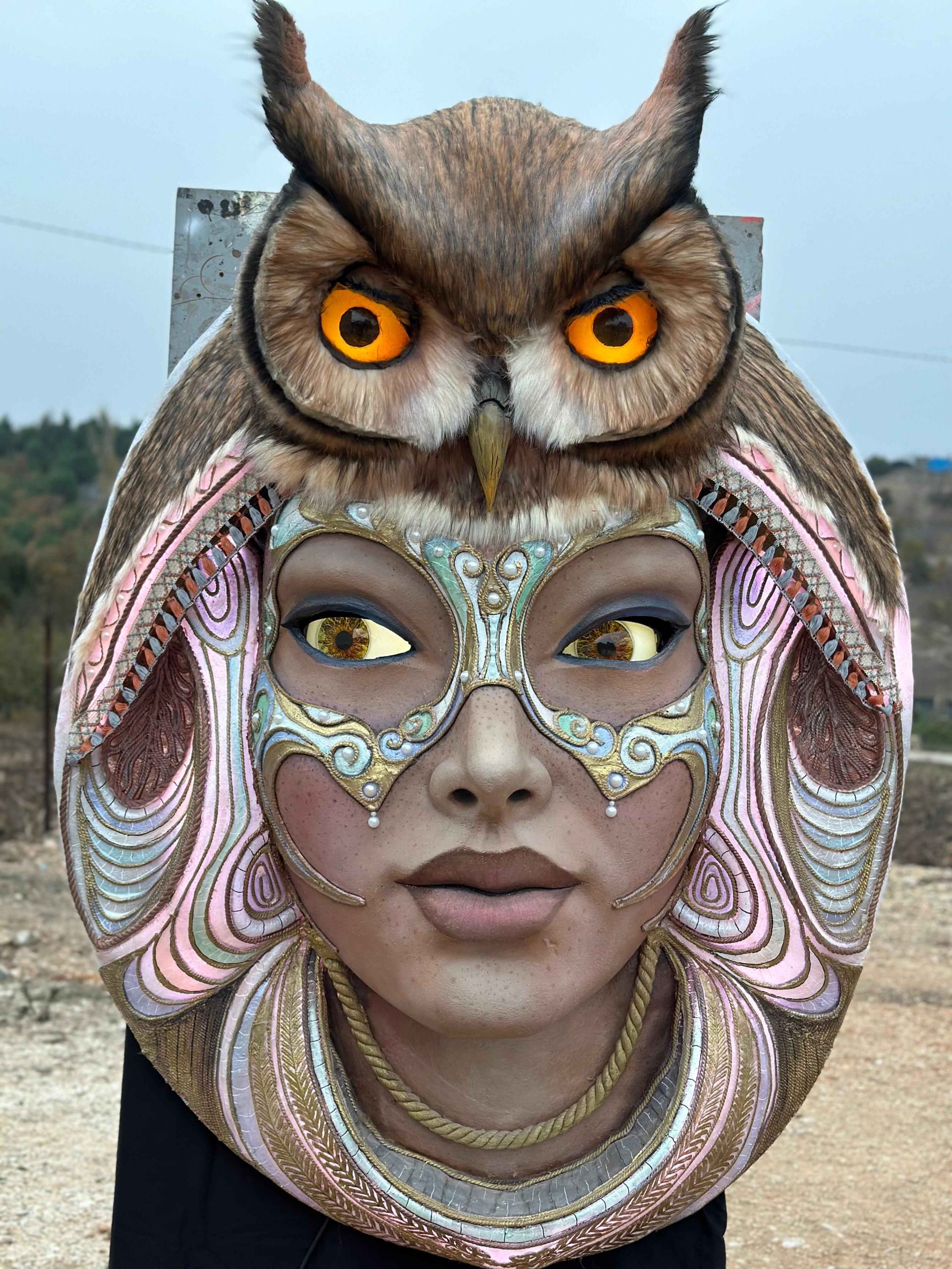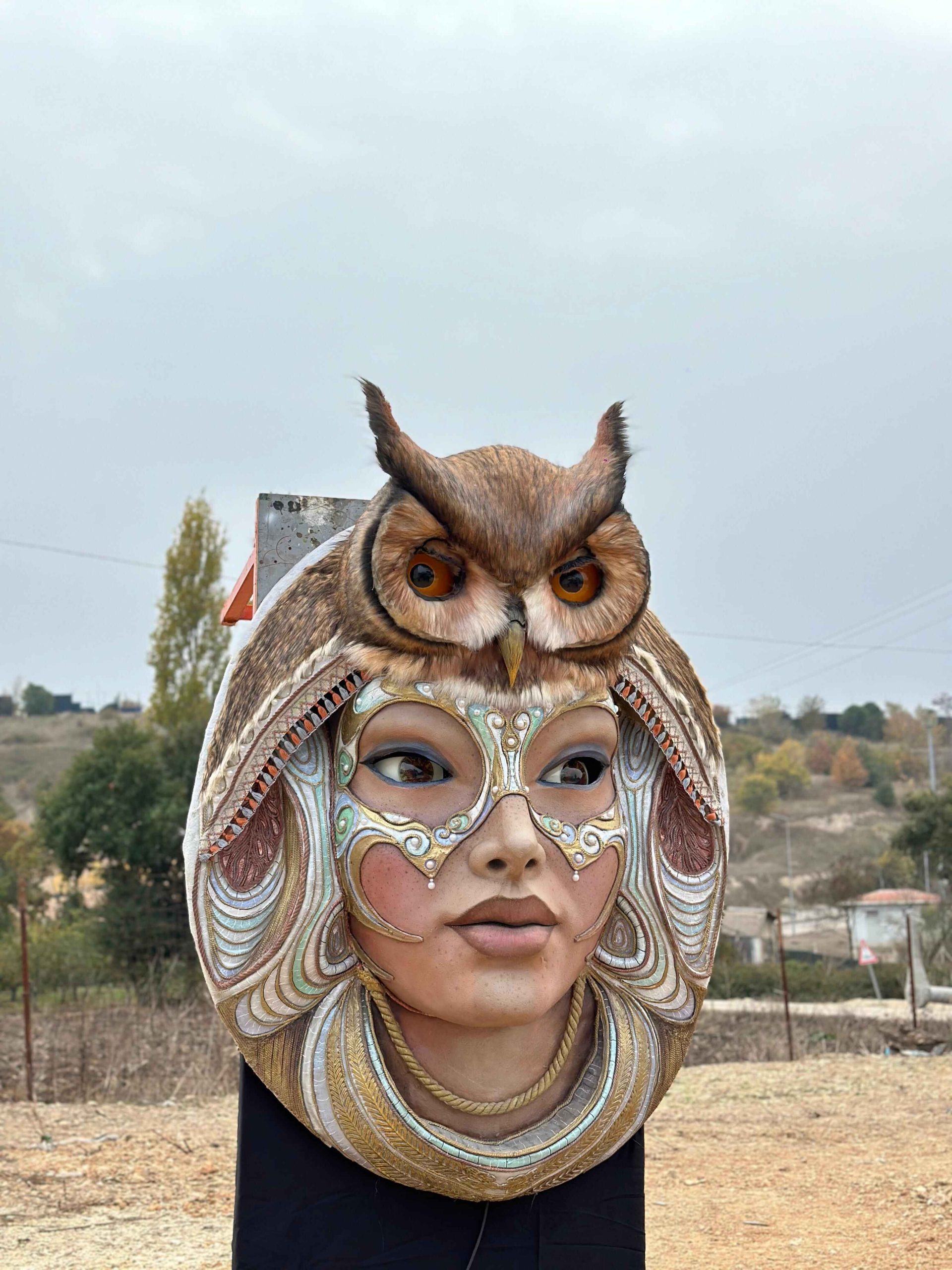 The female form is a sacred figure carrying the inner rhythm of time and nature. Her face is a window of consciousness opened to the earth. The light reflected in her eyes points to the light of knowledge emerging from darkness. Her mask, adorned with ornaments, carries both spiritual layers and cultural memory – like a code of wisdom from antiquity to today.