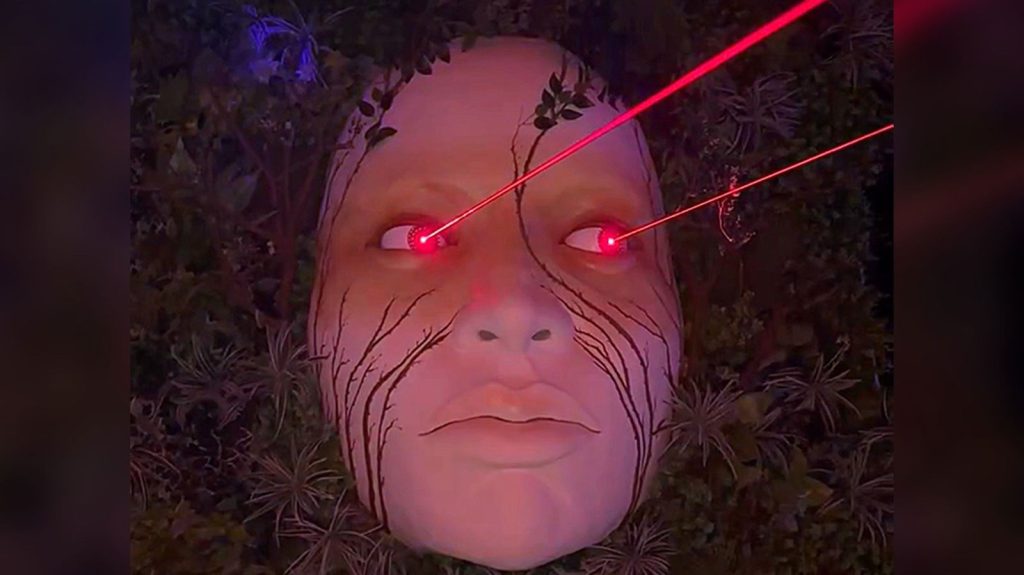 When the owner of the beach wanted to combine music and art, our designers and engineers came together and created this unique sculpture. A unique feature of this sculpture – it senses the pulse of electronic music and adapts to the rhythm of the dancing crowd. Laser beams from its eyes synchronize with the rhythm of the music and creates colorful patterns and figures, further enlivening the atmosphere of the beach.
